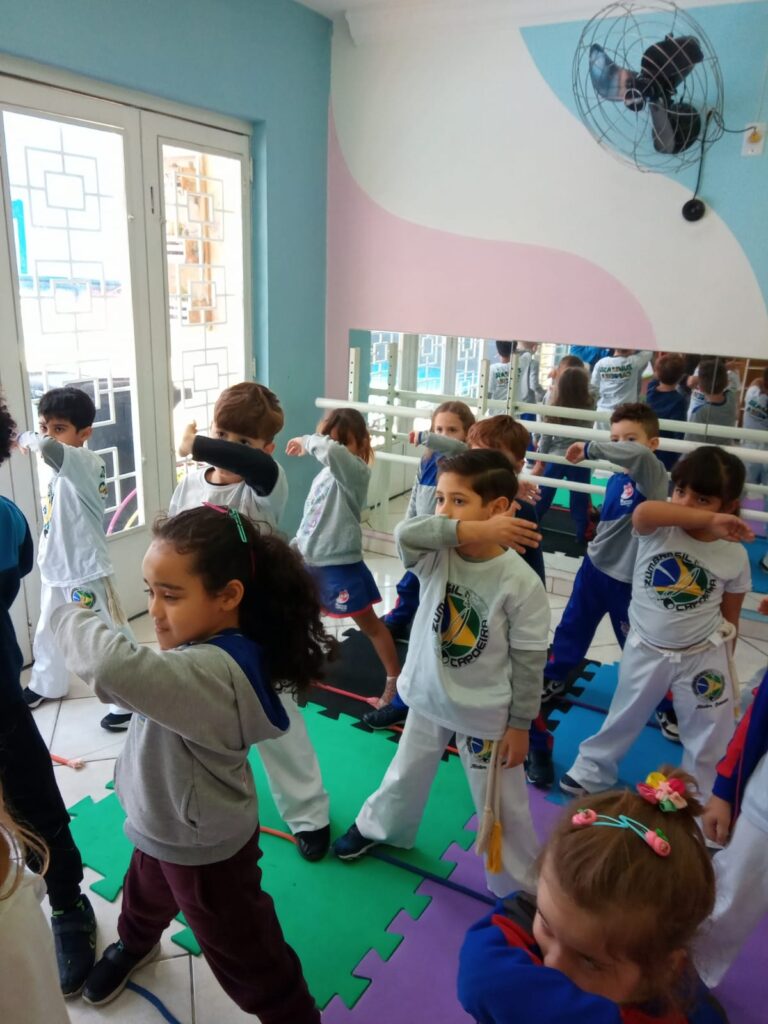 A capoeira une movimento, música e cultura, favorecendo a coordenação motora, o ritmo e a consciência corporal. Também fortalece valores como respeito, disciplina e trabalho em grupo, além de apresentar às crianças uma importante manifestação cultural brasileira.